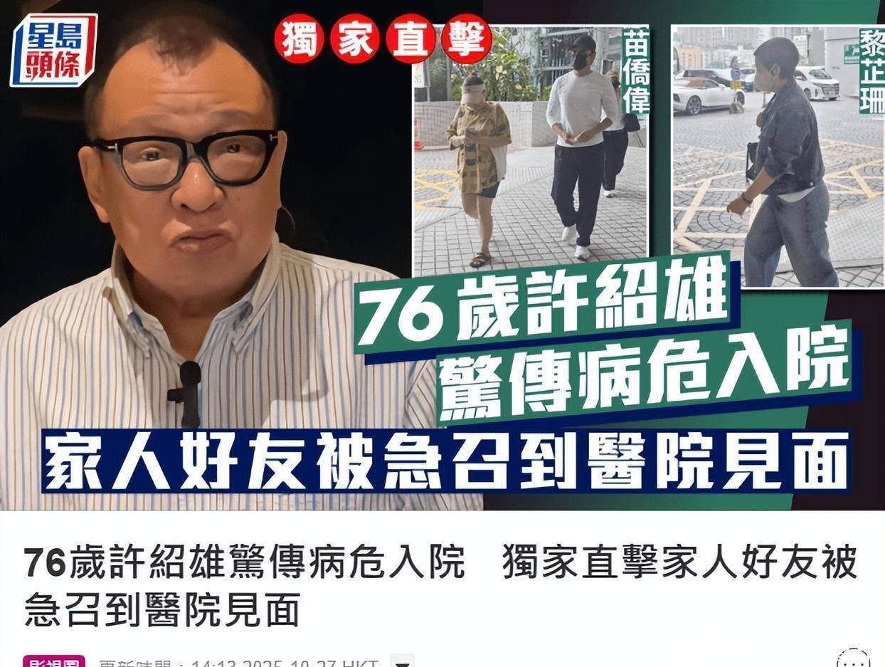 消息传开后,好多圈内明星都去医院看他,看得出来许绍雄在圈子里人缘是真不错。港圈里其实有好多像他这样的黄金配角,好多好作品能成经典、能火,都离不开这些老演员的付出,之前的吴孟达也是这样的好演员。 TVB 的佘诗曼知道许绍雄病危后,立马把当天去北京的机票给取消了,专门赶去医院看这位前辈。大家都知道,佘诗曼和许绍雄合作过好多次,私下关系也特别好,许绍雄都把她当 “干女儿” 看待呢。后来媒体采访佘诗曼,问到许绍雄的病情,她说着说着就忍不住哭了。虽然许绍雄家里人还没说具体情况,但看佘诗曼那样子,估计这次许绍雄病得确实不轻。